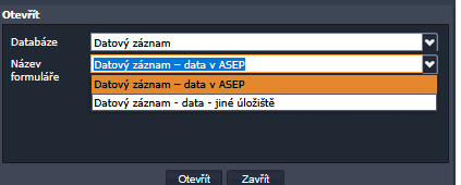V případě, že ukládáte datové soubory přímo do repozitáře ASEP, použijete formulář Datový záznam-data v ASEP.
